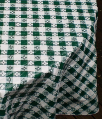 This classic Tablecloth combines a beautiful textured, Vinyl Clover-Check pattern on the surface, with a thick layer of Skid-Proof, Flannel on the back, making it perfect for indoor and outdoor use. Hand-sewn edges insure that the pattern is properly centered. The Vinyl surface contains a layer of protective coating, insuring an easy cleanup. The structured nature of the Vinyl presents an easy fold and store when not in use.