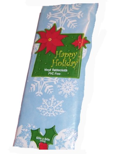 Vinyl Tablecloth PVC Free 60 X 84 Inch Oblong Blue with White Snowflakes Review